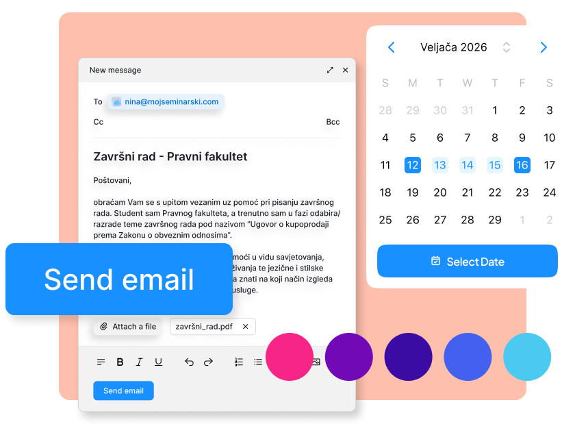Bilo da tek biraš temu ili si već pri kraju, možemo uskočiti s konzultacijama, uređivanjem, prijedlogom strukture ili izradom prezentacije za obranu.